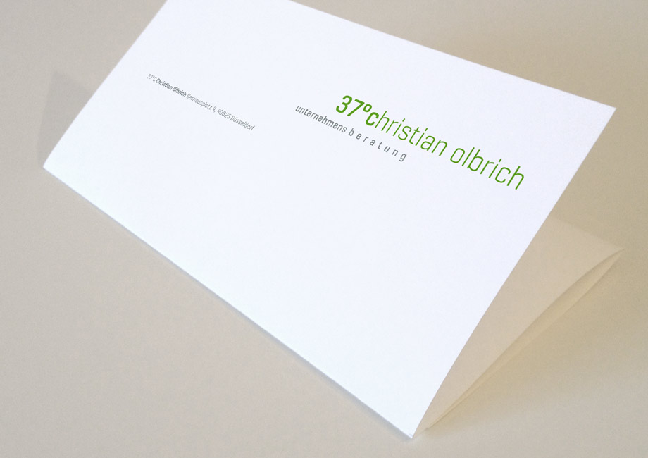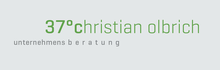 der unternehmensberater christian olbrich firmiert unter dem kürzel »37°c«. im zusammenspiel mit dem anfangsbuchstaben seines vornamens entstand die wortmarke. die farbe grün verweist auf den ganzheitlichen und ökologisch orientierten ansatz seiner arbeit.