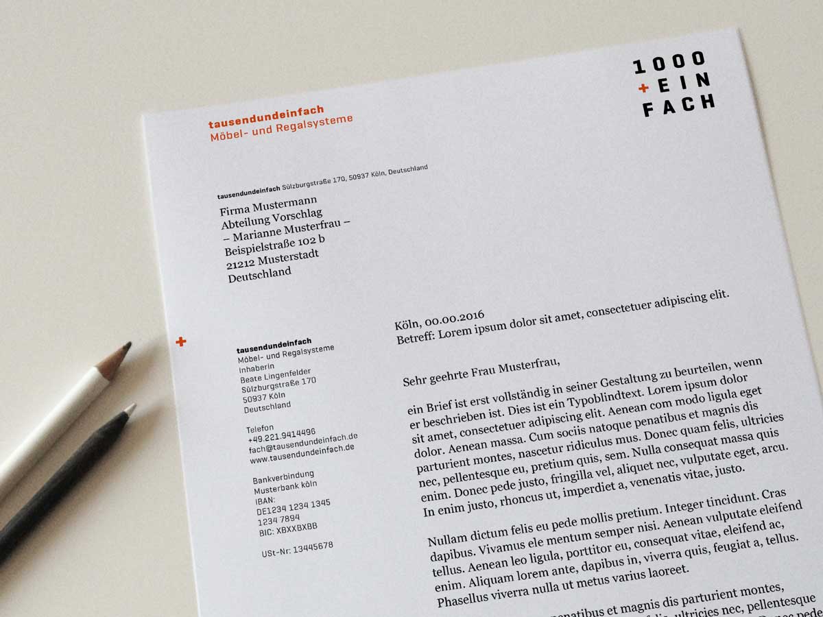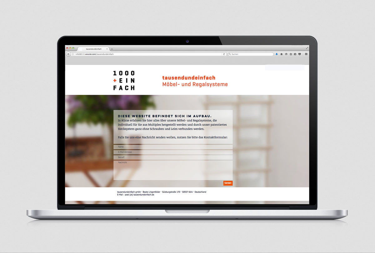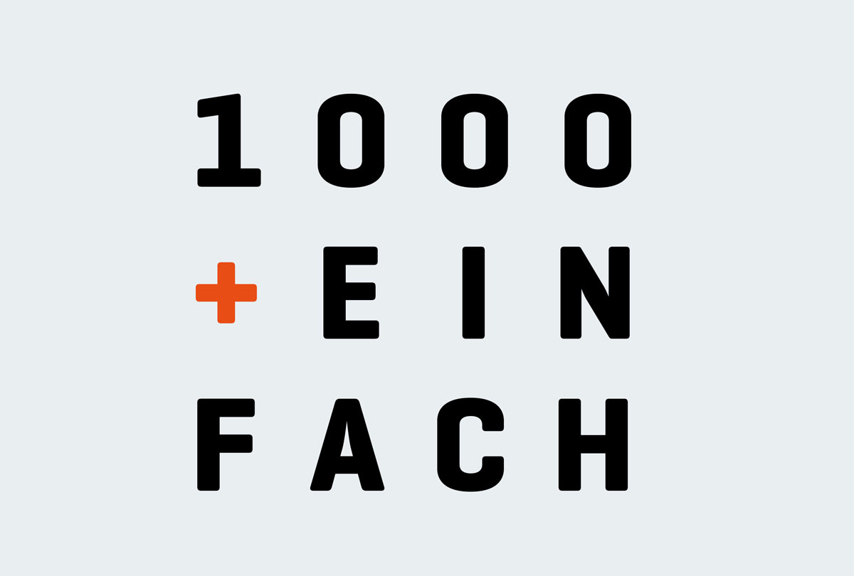 »tausendundeinfach« stellt regale aus multiplex nach maß her. die wortmarke übersetzt den firmennamen in eine kombination aus ziffern und buchstaben, die, wie regalfächer, symmetrisch über- und nebeneinander angeordnet sind.